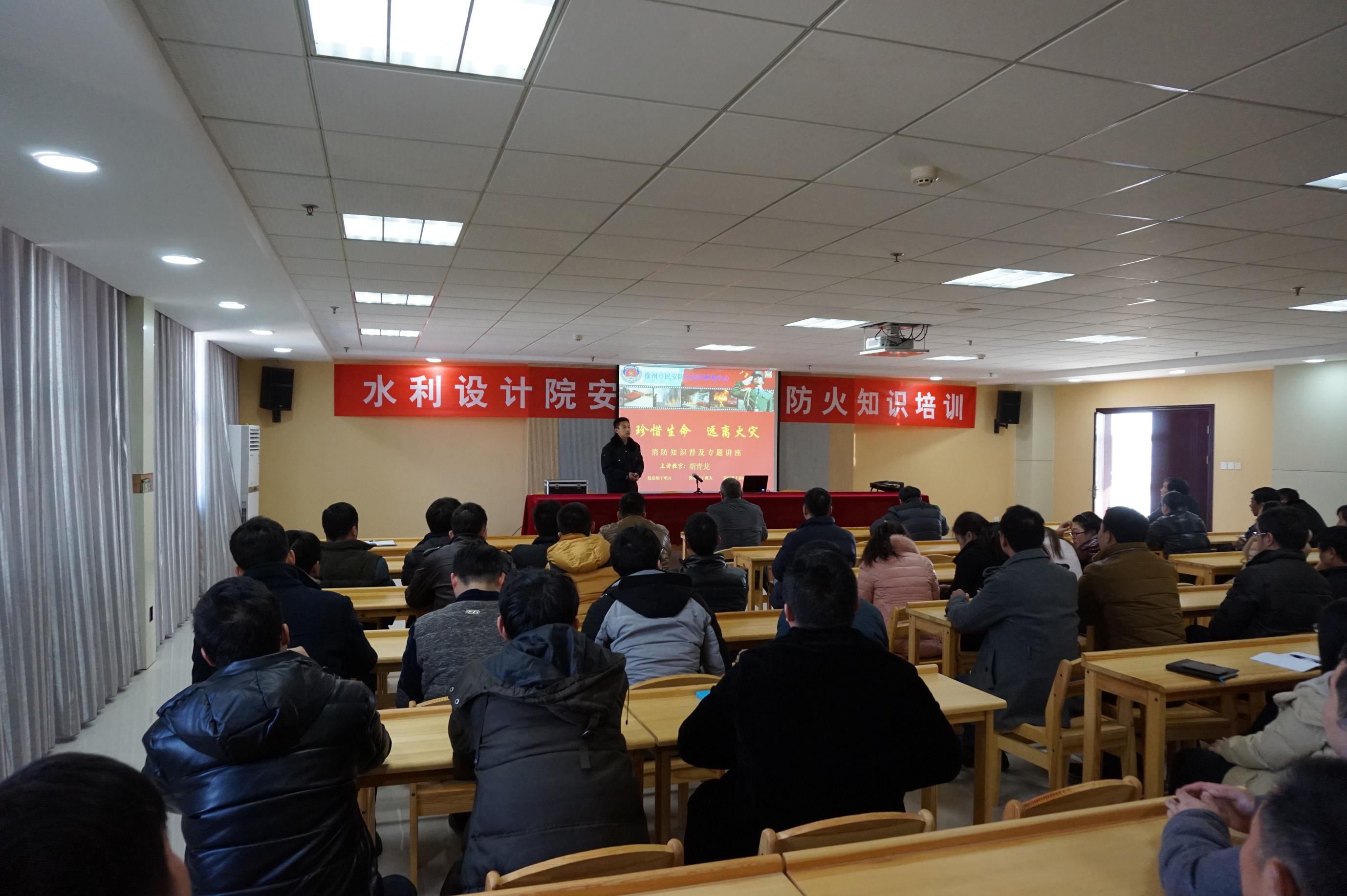 在臨近元旦、春節(jié)之際,為進(jìn)一步吸取“昆山爆炸”事件教訓(xùn),我院于12月31日邀請徐州民安防火知識咨詢中心的專業(yè)人員對全院職工進(jìn)行“火災(zāi)自防自救意識”培訓(xùn),市水利局科技安全處葛寶林主任也應(yīng)邀參加,通過培訓(xùn)進(jìn)一步貫徹落實新消防法,提升職工消防安全素質(zhì),增強(qiáng)防御火災(zāi)的能力,達(dá)到“人人收到宣傳教育,人人增強(qiáng)防范意識,人人掌握基本常識”的目的。